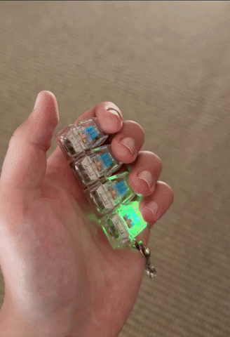 Loving this fidget toy. The click is satisfying and the leds change colour as you hold them down. I wish it was a slower colour change it’s still awesome